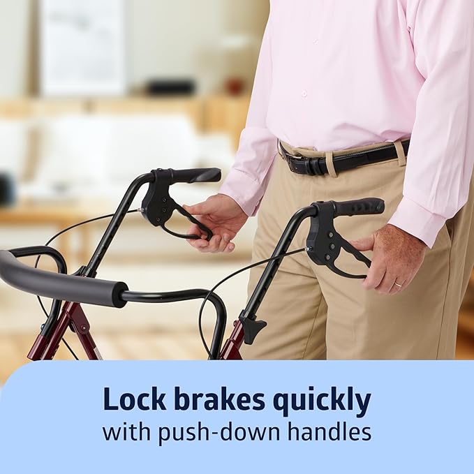 - EASY-TO-USE BRAKE HANDLES—Ergonomic handles are easy for seniors and fragile hands to grip without slipping; push up to brake and push down to lock wheels in place