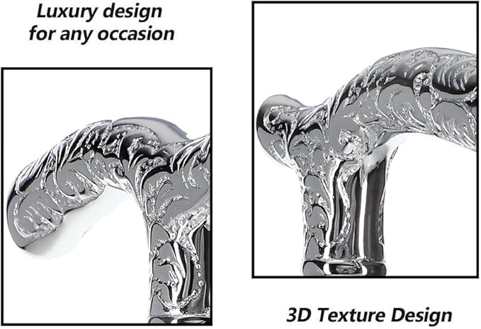 - The cane features a polished silver-finished collar, adding an elegant touch to the overall design. This refined accent makes it suitable for upscale events and is the perfect walking stick for hiking or social gatherings. Crafted with attention to detail, this cane adds sophistication to any outfit.