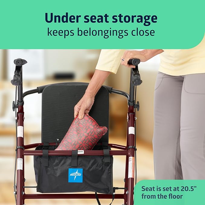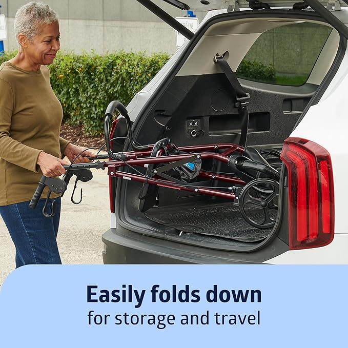 Medline Steel Rollator Walker for Adult Mobility Impairment, Burgundy, 350 lb. Weight Capacity, 8” Wheels, Foldable, Adjustable Handles, Rolling Walker for Seniors