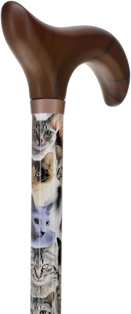 - Fall in love with your daily strolls with this cat-lover's dream! Featuring a vibrant high-definition cat pattern, this walking stick brings a personal touch to your mobility. Designed to showcase your love for furry friends, it's a great gift for animal lovers who need stylish walking canes.
