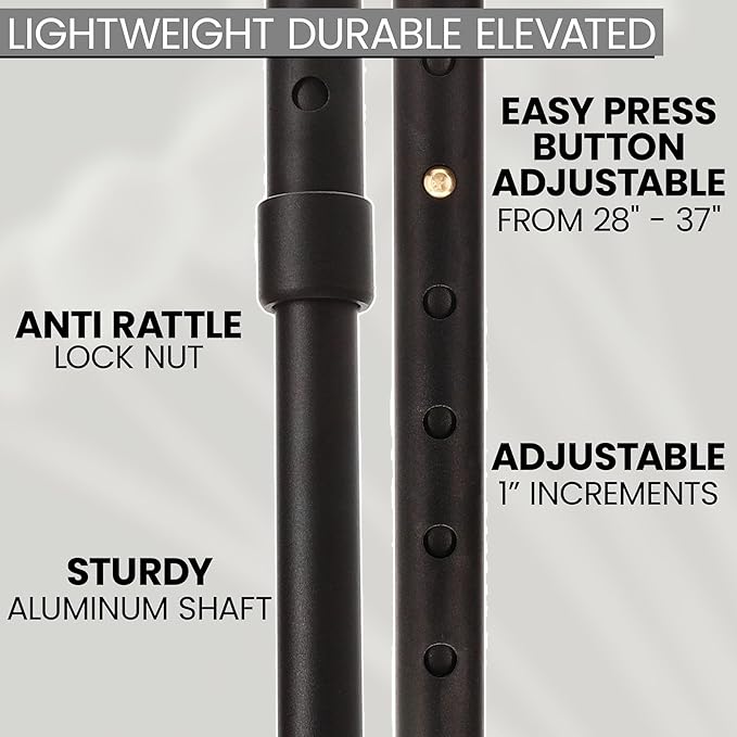 - Adjustable and Lightweight: Crafted from lightweight, durable aluminum, this walking cane offers adjustable height from 28 to 37 inches, catering to users of varying heights. Its adjustable feature ensures a customized fit, while its lightweight construction allows for easy maneuverability.
