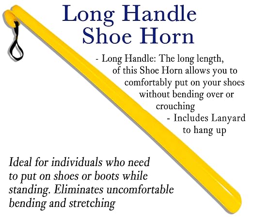 - The Sock Aid allows to easily put on socks or stocking without bend over. A 24" long shoe horn is included to easily put on any type of shoe while standing.