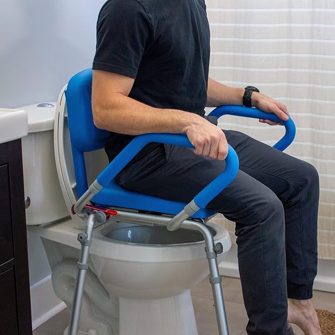 Platinum Health GentleBoost Uplift Raised Toilet Seat with Handles, Padded Bedside Commode Chair for Toilet, Elderly,Handicap Assistance Products, Elevevated, Adjustable with Arms, for Seniors (Blue)