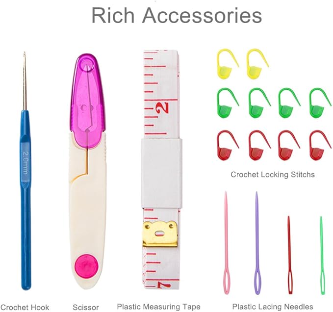 - What You Get: 18 pairs bamboo circular knitting needles, 1 Scissor, 1 Measuring Tape, 1 Crochet Hook, 4 Plastic Lacing Needles,10 Crochet Locking Stitch in a small plasitic bag.