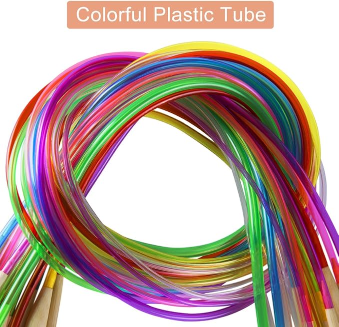 18 Pairs Bamboo Knitting Needles Set, Vancens Circular Wooden Knitting Needles with Colorful Plastic Tube, Small Tools for Weave are Included, 18 Sizes: 2mm - 10mm, 31.5" Length