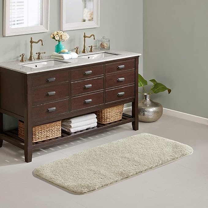 Suchtale Large Bathroom Rug Extra Soft and Absorbent Shaggy Bathroom Mat (24 x 60, Light Tan) Machine Washable Microfiber Bath Mat for Bathroom, Non Slip Bath Mat, Bathroom Floor Mats Rubber Back