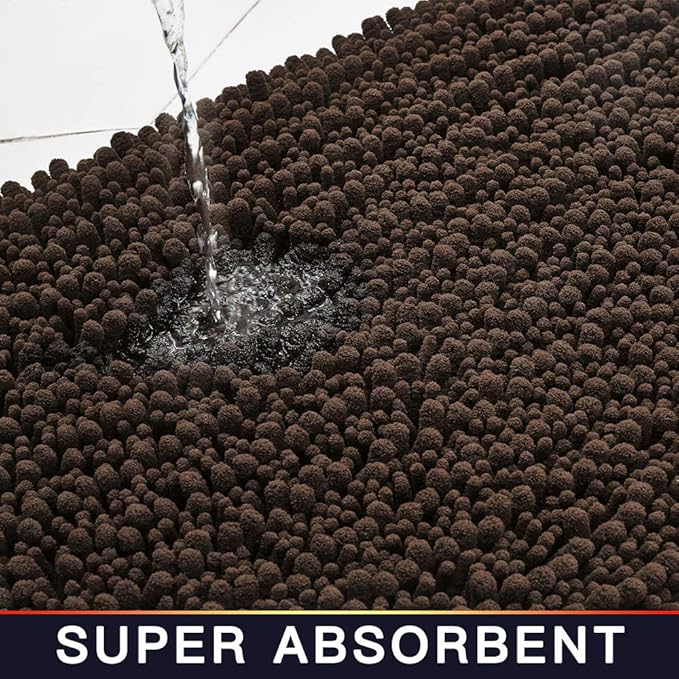 Walensee Bathroom Rug Non Slip Bath Mat (24x17 Inch Brown) Water Absorbent Super Soft Shaggy Chenille Machine Washable Dry Extra Thick Perfect Absorbant Best Small Plush Carpet for Shower Floor