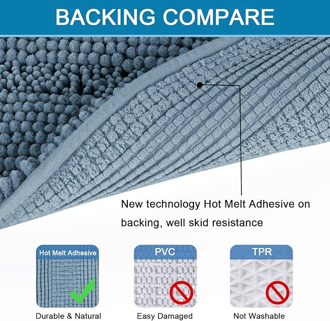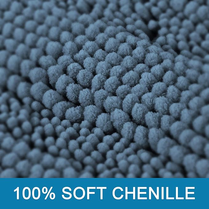 - ULTRA THICK: These bath rugs are passed GLOBAL RECYCLED STANDARD certificate. Compare the normal quality 1350g/sm, this plush chenille carpet set is more thick and bushy, quality up to 2000g/sm weight, thus make the bath mats amazing soft and cozy like a comfortable quilt protector for your feet