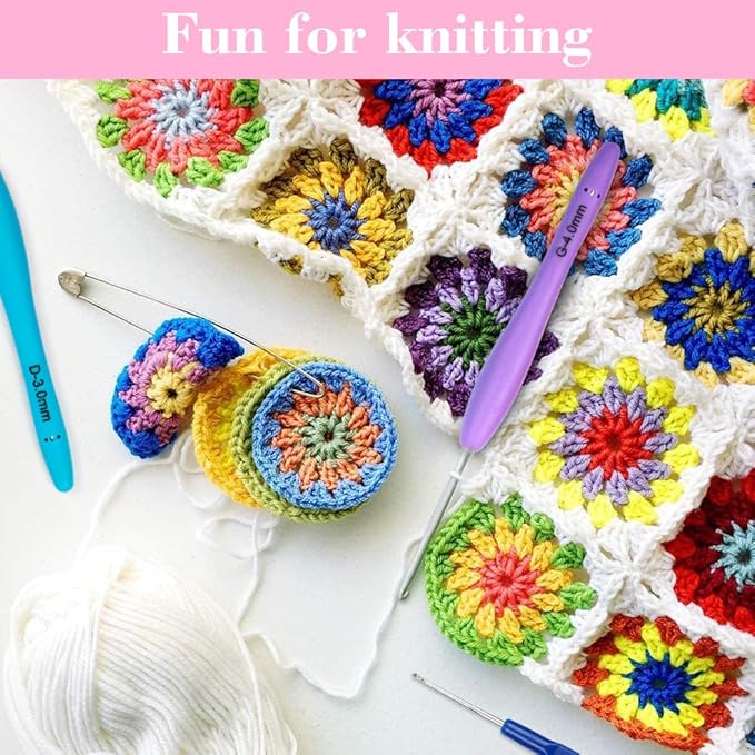 - Enjoy Crocheting without Pain: Our knitting needles with soft grip handles, can reduces or eliminates hand, wrist or finger pain. It is perfect for arthritic Hands. Comfortable rubber handle provide a nice firm grip, you can crochet longer without discomfort. Every hook has a color coded plastic handle printed with both letters and numbers.