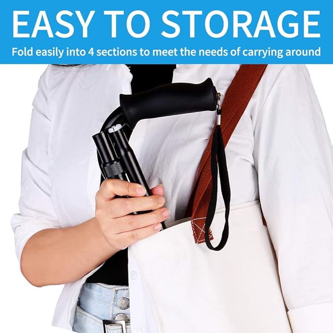 - 【Folding Cane】One-Touch Fold & Lightweight Aluminum Frame for Ultimate Portability As a truly portable folding cane, it collapses in seconds and fits in a purse or travel bag. Made of durable, lightweight aluminum, it's easy to carry all day without strain