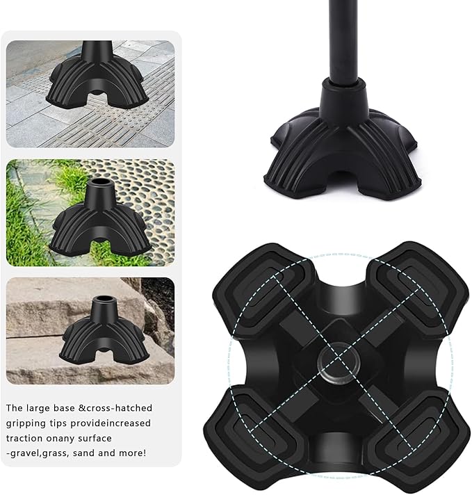 - 【Self-Standing Cane】Stable Base & Non-Slip Tip for Maximum Safety and Balance The innovative self-standing cane base keeps it upright and within reach. Paired with a sturdy non-slip rubber tip, it provides reliable stability and balance on tile, wood, or pavement