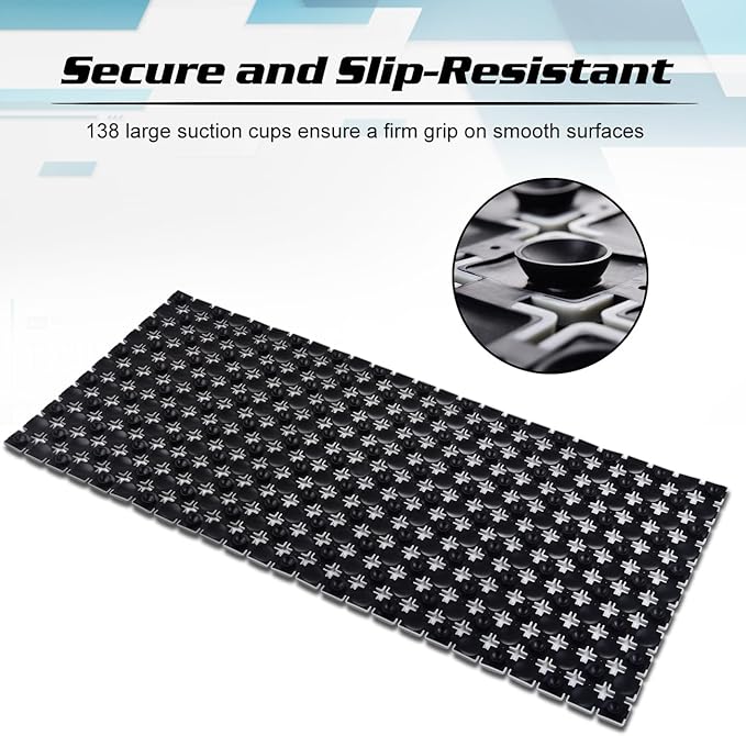 - Best solution for slippery shower, 138 suction cups in the underside adhere well to floor and there isn't a chance that it will slip.