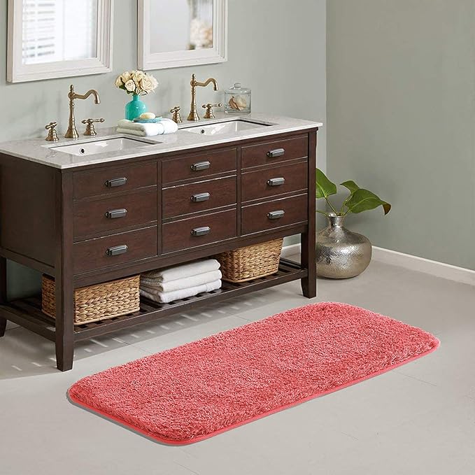 Suchtale Large Extra Soft Shaggy Bath Mat - Microfiber Bath Mat Absorbent Machine Washable Non Slip Rubber Back (24 x 60 Living Coral)