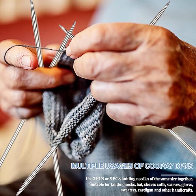 - [Strong, Comfortable Grip & High-quality Metal DPNS] Our steel knitting needles can feel comfortable to knit with for longer periods of time, in comparison to wooden / birch or plastic needles. They are clean, not rusted and no yarn drag at all, and they glide through the yarn effortlessly. Anodized to increase hardness and resist corrosion, as well as being lightweight for those crafter's hands