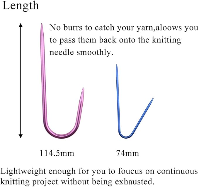- Sturdy aluminum:High quality aluminum alloy so theyβre lightweight enough for you to foucus on continuous knitting project without being exhausted.These pins are well-machined,not easy to cause deformation under pressure.Keeping the sureface smooth so no burrs to catch your yarn,aloows you to pass them back onto the knitting needle smoothly.