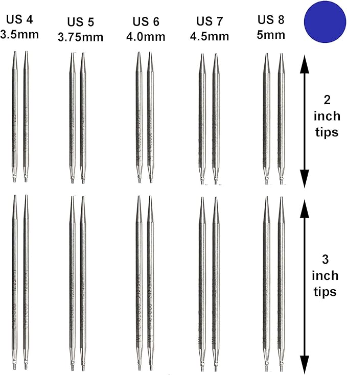 - Includes 1 ChiaoGoo Knitting Needles Interchangeable Twist Shorties Lace 2 and 3-Inch Set in US Sizes 0, 1 , 1.5 , 2 , 2.5, 3, 4, 5, 6, 7, 8 (metric 2.0, 2.25, 2.5, 2.75, 3.0, 3.25, 3.5, 3.75, 4.0, 4.5, 5.0) and 1 Craft Project Bag