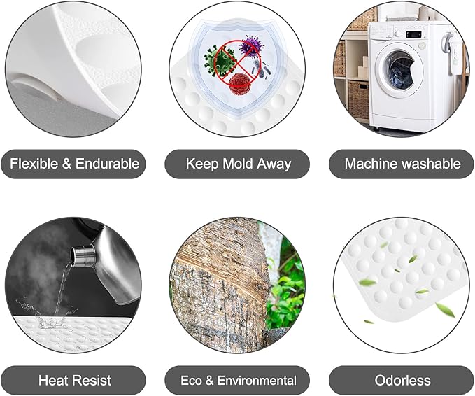 - 【Updated Safe Material】Yanzifly bathtub mat is made from silicone, material that is no more bother from traditional PVC mat's chemical smells, good for family use.