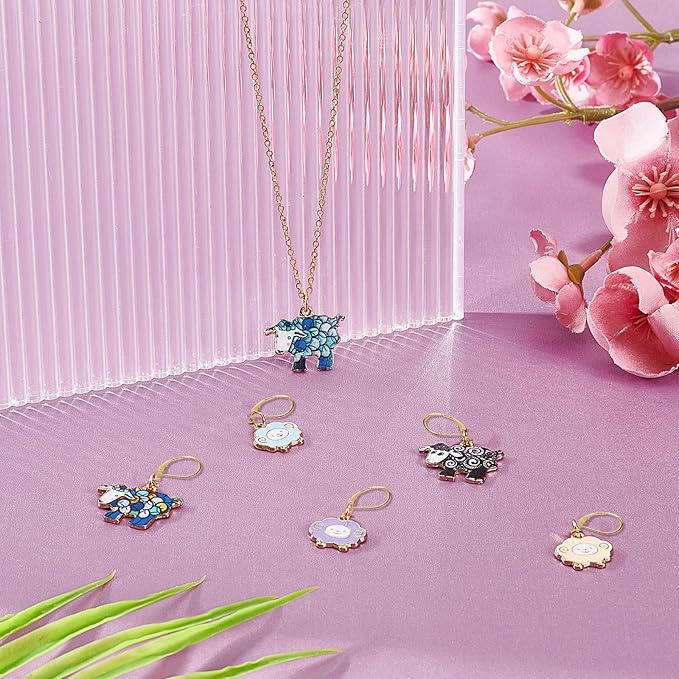 NBEADS 6 Pcs Sheep Stitch Markers, Alloy Enamel Crochet Stitch Marker Charms Locking Knitting DIY Handmade Gift for Weaving Sewing Accessories Quilting Jewelry Making