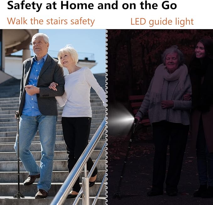 Folding Walking Cane with LED Light for Women & Men - Foldable, Adjustable, Collapsible Lightweight Aluminum Walking Stick for Seniors & Adults