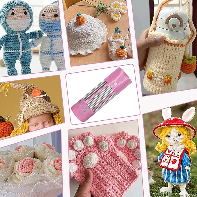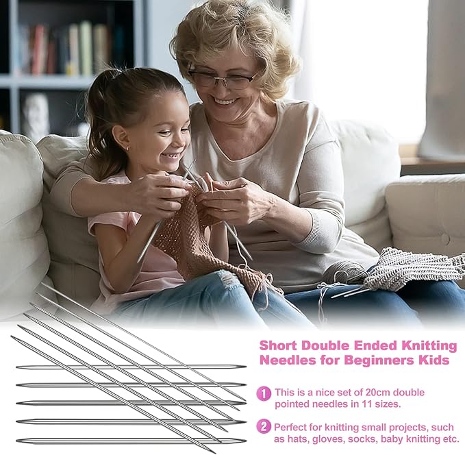 - [Short Knitting Needles Set] Double-ended knitting needles are approximately 8 inches (20 cm) long. Short metal knitting needles are very flexible and easy to use, especially on smaller projects. This short length design can keep the tip of the knitting needle away from us during the knitting process, avoiding too long and accidentally hurting yourself.