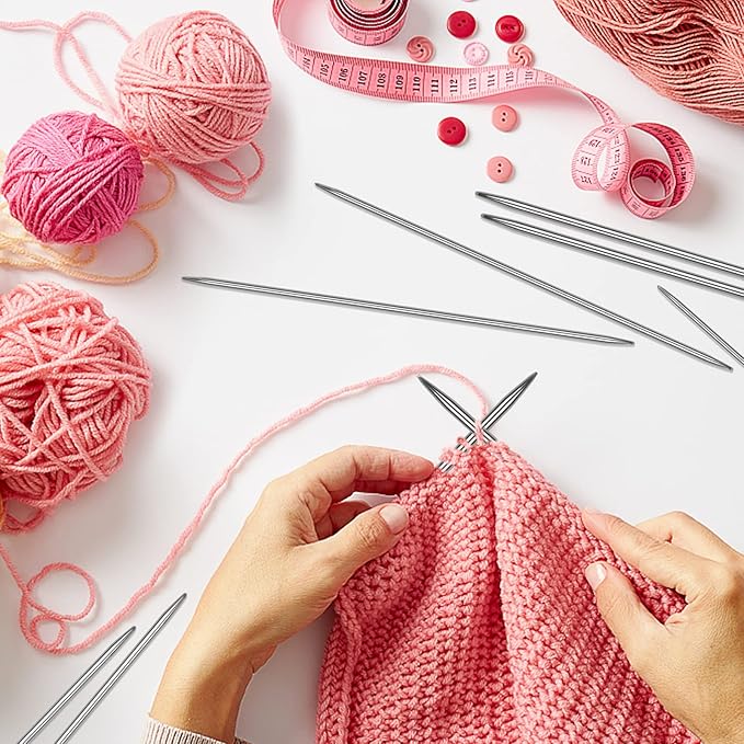- [Double Pointed Knitting Needles Set] This beautifully packaged set of double point knitting needles is available in a wide variety of sizes. Double-ended knitting needles are more flexible and convenient than single-ended knitting needles. If you are a beginner, this metal double pointed knitting needles set are very useful for you, you don't have to think about buying different sizes for specific yarns, because it provides you with 11 sizes of needles to learn to knit.