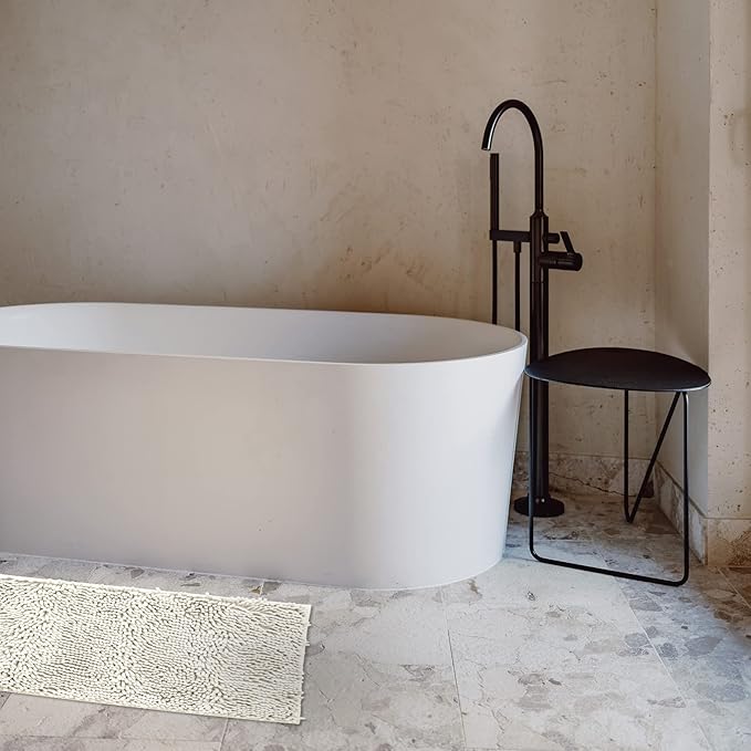 - [AGAINST THE COLD]Made of super soft chenille microfiber, the mat will alleviate foot pressure and relieve foot fatigue and will protect your feet from the cold floor.