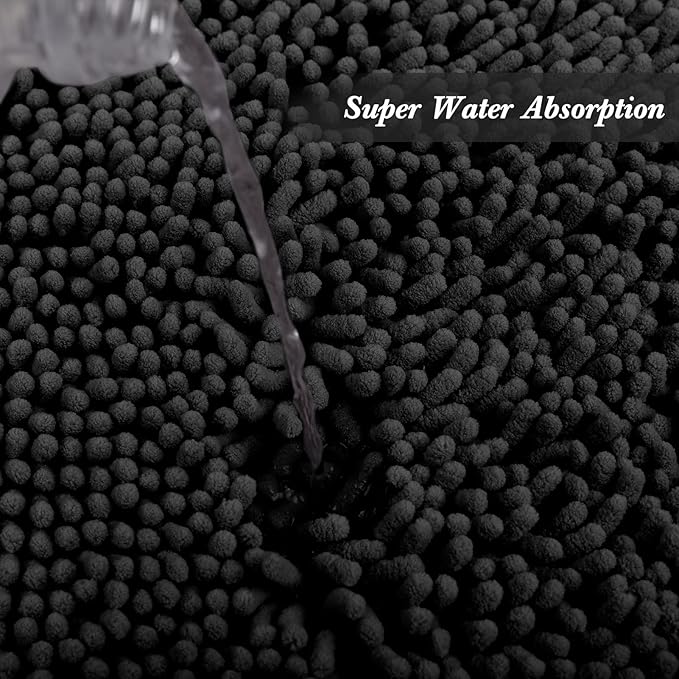 Non-Slip Bath Rug,Extra Soft Microfiber Bedroom Shag Carpet with Anti-Slip Backing,Water/Dust Absorbent Fast Dry Shower Mat,Sound Insulated Stairs Pad,Machine Washable (Black,23 x 35 Inches)