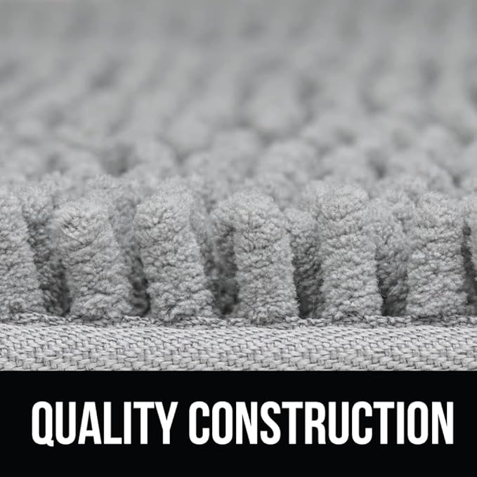 KANGAROO Bathroom Rugs, Chenille Soft Absorbent Bath Rug, Shaggy Shower Mat, Quick Dry Machine Wash Bathmat, Plush Carpet Mats for Tub, Bathtub and Room Home Decor Accessories, 60x24, Light Gray