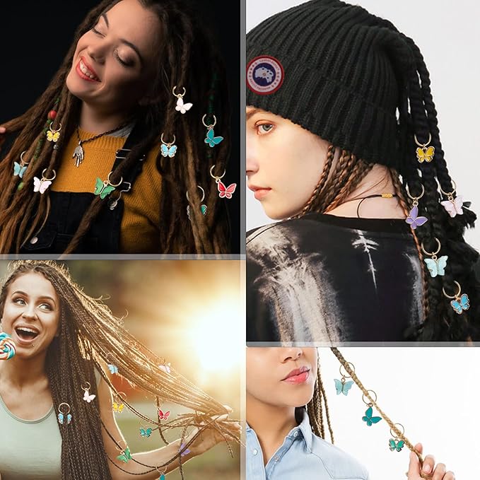 NBEADS Butterfly Charms and Braid Clips - 45 Pcs Removable Crochet Stitch Markers Made of Charms for Knitting, Weaving, Sewing, and Dreadlock Decorations