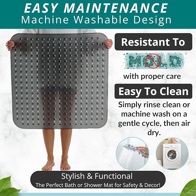 - NON-SLIP MAT enjoy 360-degree protection in your shower; prevent falls with an extra large Square bathroom shower bath mat for larger shower stalls with pliable suction cups for secure sticking capacity to help securely hold the shower mat to shower stall floors for safe anti-slip protection