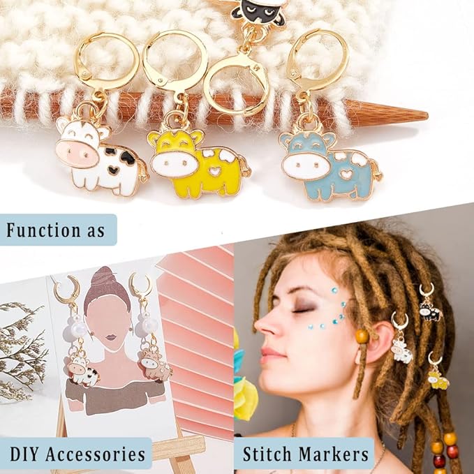 - Cow Stitch Markers -- These stitch marks are designed in the shape of a cow. They are lovely, bright in color, exquisite and beautiful. Each of them has a glittering feature. They are 6 colors, which can help you organize and differentiate crochets in different positions, providing more choices for your DIY craft projects.
