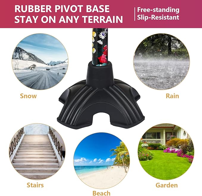 - Self-Standing Rubber Base: Equipped with a non-slip rubber base, this cane stands on its own. No more bending over to pick up a fallen walking stick, adding convenience for daily use.