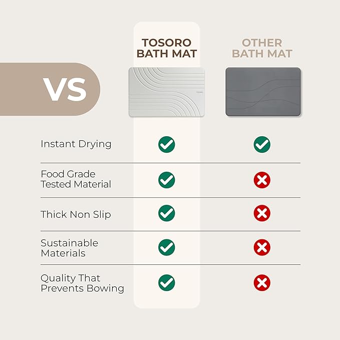 - LUXURIOUS AND FUNCTIONAL: Elevate your bath mats for showers with Tosoro Bath Stone Mat. Designed to bring the perfect balance between innovative, sophisticated spa-like design and utility to your home.