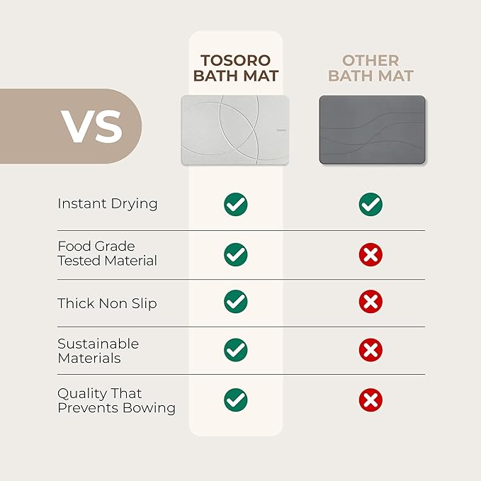 - LUXURIOUS AND FUNCTIONAL: Elevate your bath mats for showers with Tosoro Bath Stone Mat. Designed to bring the perfect balance between innovative, sophisticated spa-like design and utility to your home.