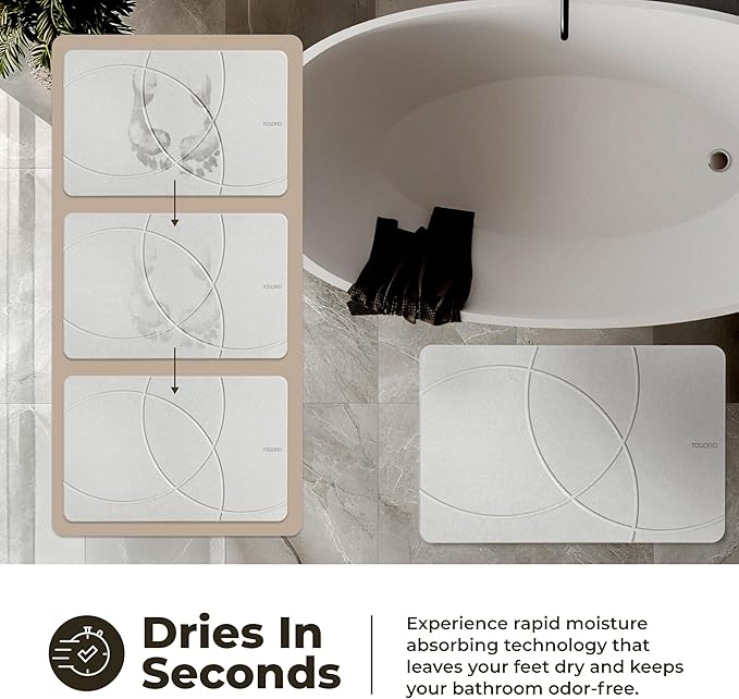 - QUICK DRYING MAT: Our absorbent diatomaceous earth shower mat quickly drains water away to keep moisture from building up. Enjoy having a clean and dry surface under your feet after every bath with our bathroom mats!