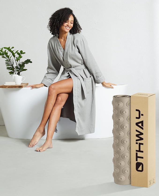 - Excellent Grip: You will be very impressed with the holding power and non-slip grip. Before fill with water in the tub, press the mat’s reversed suction rings and putting pressure on them increases grip–It helps prevent slipping & sliding. The upraised design also massages the soles of your feet!
