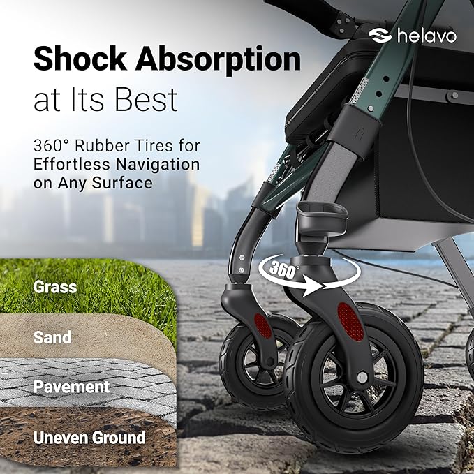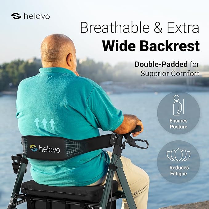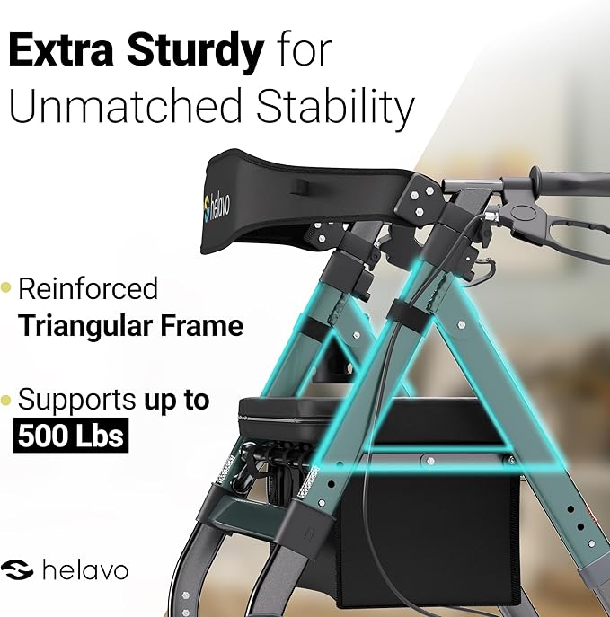- Extra Strong and Wide: The Helavo outdoor heavy-duty walker is engineered with a reinforced aluminum frame, ensuring exceptional durability and a maximum load capacity of 500 lbs. Its wide 22.4" handle spacing provides a generous and comfortable seat, ideal for taking breaks.