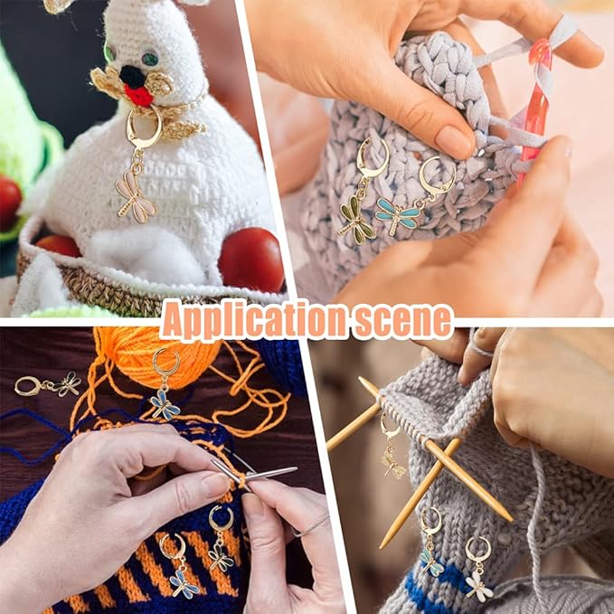 - Dragonfly Theme Stitch Markers -- These stitch markers are designed in the shape of dragonfly theme with 7 different colors. They are lovely, lifelike, delicate and beautiful. Helps you to organize and differentiate the different positions of the crochet stitches, giving you more options for your DIY craft projects.