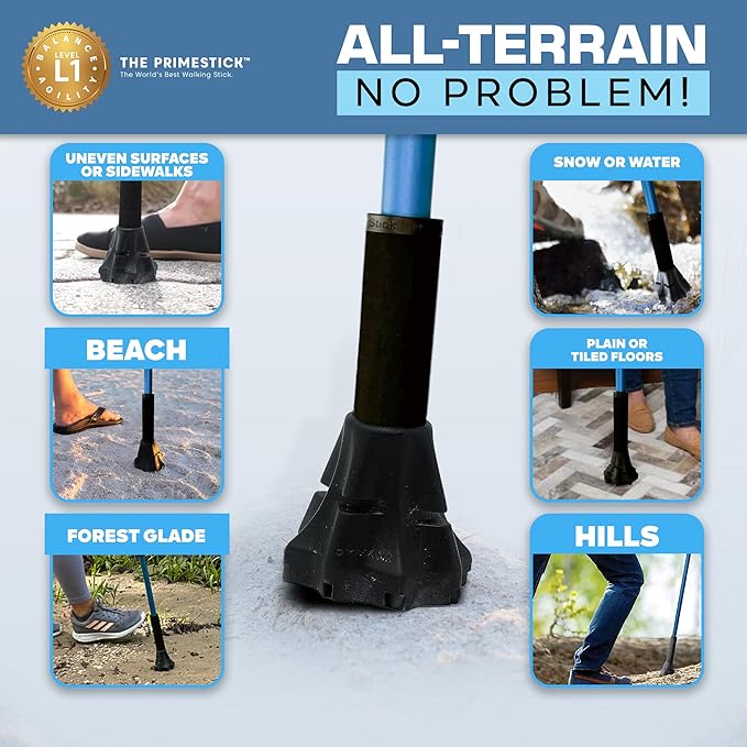 - SLIPPERY GROUND IS A FALL WAITING TO HAPPEN Ordinary canes can’t handle all terrains. The Prime Stick’s Cyclone Tip grips any surface, in any weather, keeping you steady on rough trails, wet floors, and uneven sidewalks. Don’t gamble with safety – choose Prime.