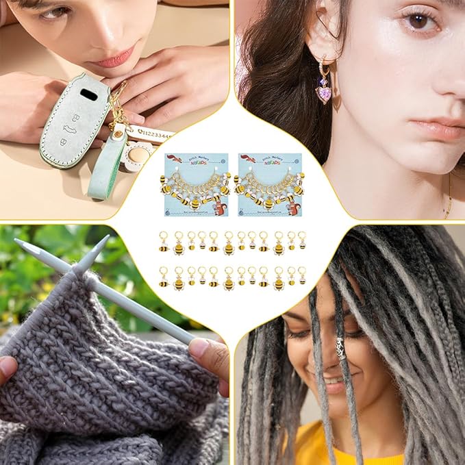 - 4 Styles Available -- Contains 3 styles bee charms and a honey jar charm, each pattern has a beautiful spray enamel, delicate and lively, which can make your knitting process more interesting.