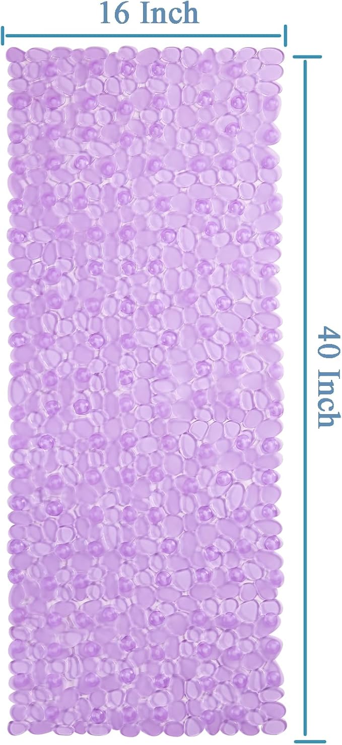 Bath Shower Mat Non Slip: Extra Large Pebble Bathtub mat for Families, Anti Slip Shower Matt with Drain Holes Suction Cups Tub Mat - 16 X 40 Inch Clear Purple