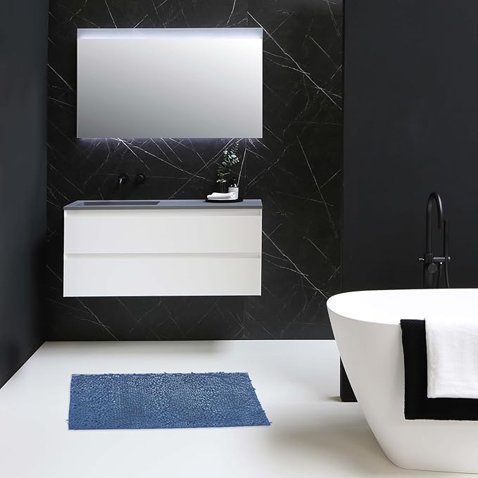 Non-Slip Bath Rug,Extra Soft Microfiber Bedroom Shag Carpet with Anti-Slip Backing,Water/Dust Absorbent Fast Dry Shower Mat,Sound Insulated Stairs Pad,Machine Washable (NavyBlue,12 x 24 Inches)