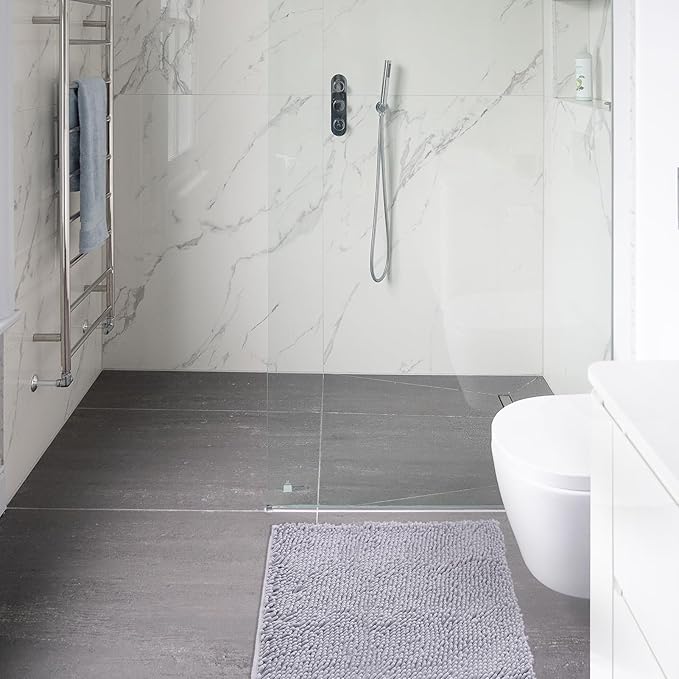Non-Slip Bath Rug,Extra Soft Microfiber Bedroom Shag Carpet with Anti-Slip Backing,Water/Dust Absorbent Fast Dry Shower Mat,Sound Insulated Stairs Pad,Machine Washable (Grey,24 x 24 Inches)