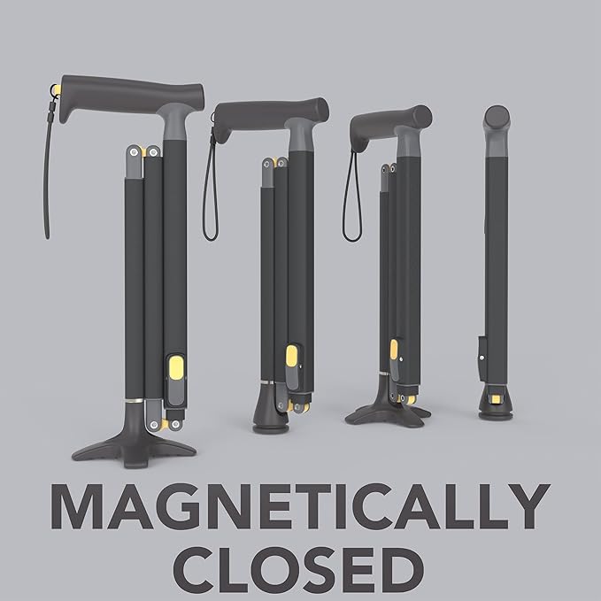 - EASY FOLDING CANE - No other walking cane for men or for women on the market folds this fast, this easily or stores this neatly together. Our unique magnetic foldable cane design allows you to utilize our collapsible cane without compromising on quality. Our walking stick even folds in both directions of the handle for unique functionality.