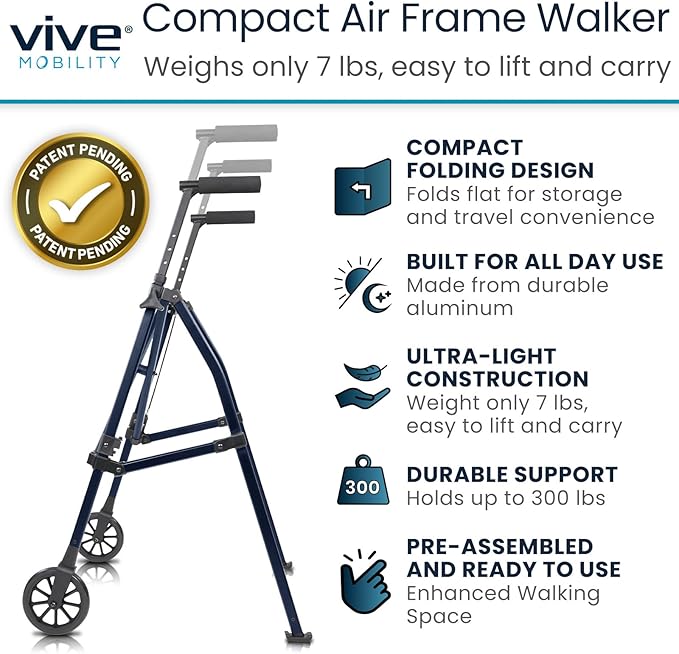 - SAFE, STABLE, & PATENT-PENDING: Built from high-strength aluminum, this lightweight 7 lb walker supports up to 300 lbs. Its patent-pending locking system ensures secure folding, while the lifetime frame guarantee provides lasting confidence in its durability.