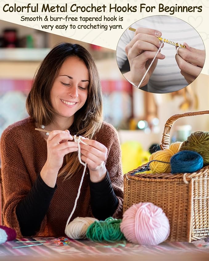 - Aluminium Crochet Set: The crochet needles are made of high-quality aluminum oxide coating, which is not easy to fade, lightweight and durable. After multiple polishing processes, each crochet hook has a smooth tip that will not be snagging yarn or splitting the yarn.