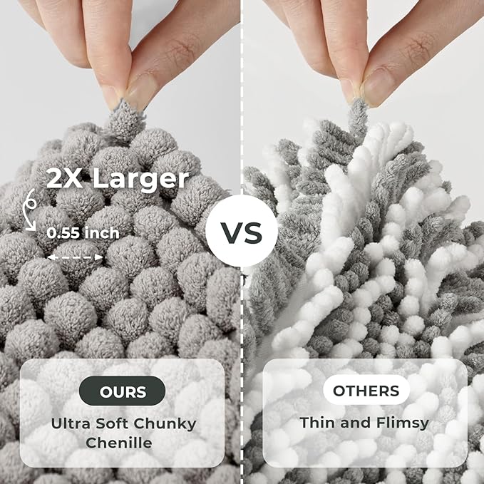 - Soft & Comfortable - Indulge in unparalleled comfort with our luxurious bath mat. Made from chunky chenille, it envelops your feet in soothing softness, providing a heavenly experience after every bath. No more stepping onto hard, cold floors - our bath rug pampers you with its plush and cozy feel.
