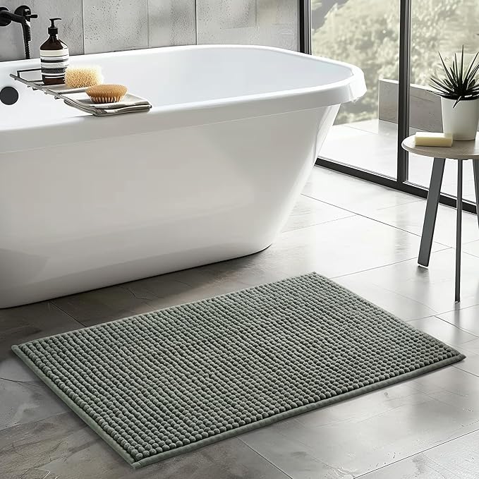 FRESHMINT Thick Chunky Chenille Bathroom Rugs 24"x36", Non Slip Bath Mat, Large Soft Bathroom Decor, Cute Shower Mat Water Absorbent, Washable, Sage Green