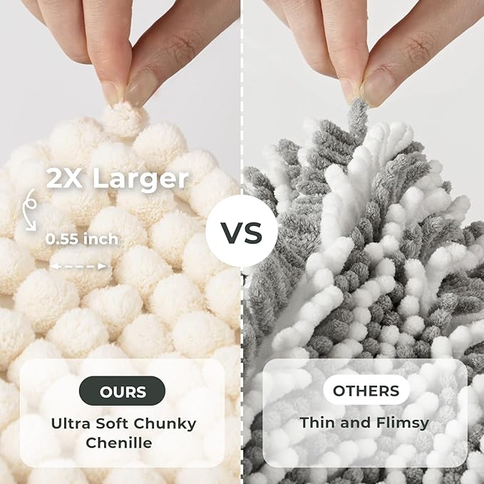 - Soft & Comfortable - Indulge in unparalleled comfort with our luxurious bath mat. Made from chunky chenille, it envelops your feet in soothing softness, providing a heavenly experience after every bath. No more stepping onto hard, cold floors - our bath rug pampers you with its plush and cozy feel.