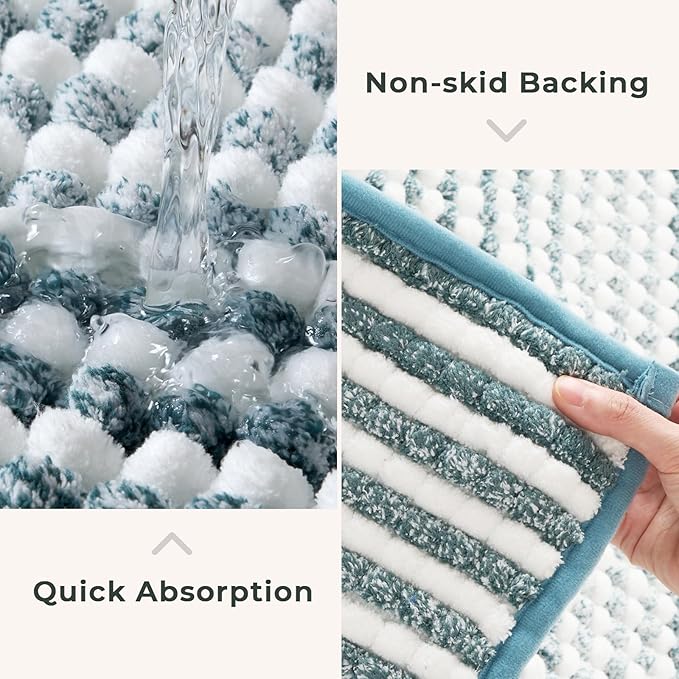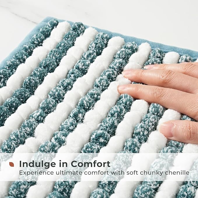 - Absorbent and Quick Dry - Experience exceptional water absorption with our premium bath mat. The thick chenille yarn efficiently wicks away moisture, leaving your feet dry and comfortable in a matter of seconds. Enjoy the convenience of a fast-drying bath rug that enhances your daily routine
